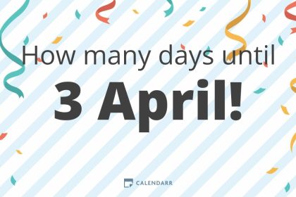 To determine how many days are left until April 3rd, we need to know the current date. Since I do not have access to the current date, I cannot provide an exact number of days. Please provide the curr...
